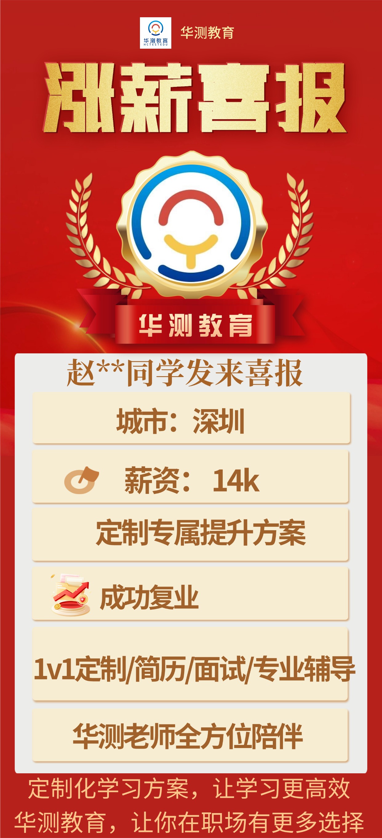 【华测喜报】长沙 薪资13.5K 涨薪4.5K