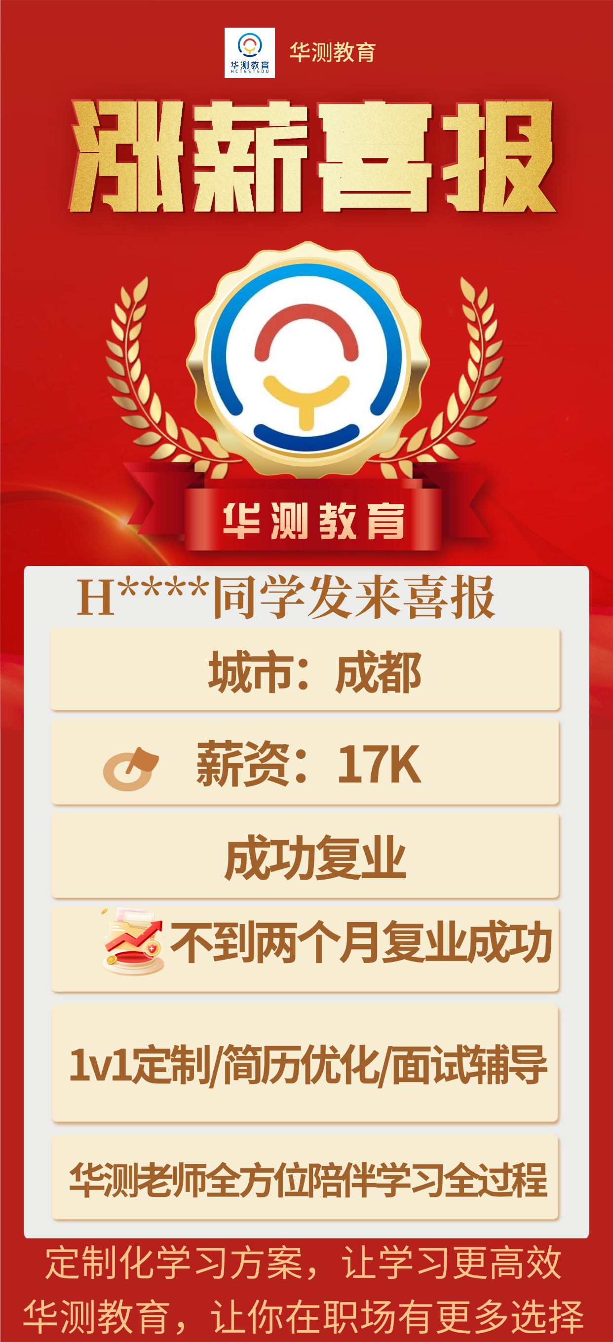 【华测喜报】成都,斩获17K/月*18薪,涨薪4.2W