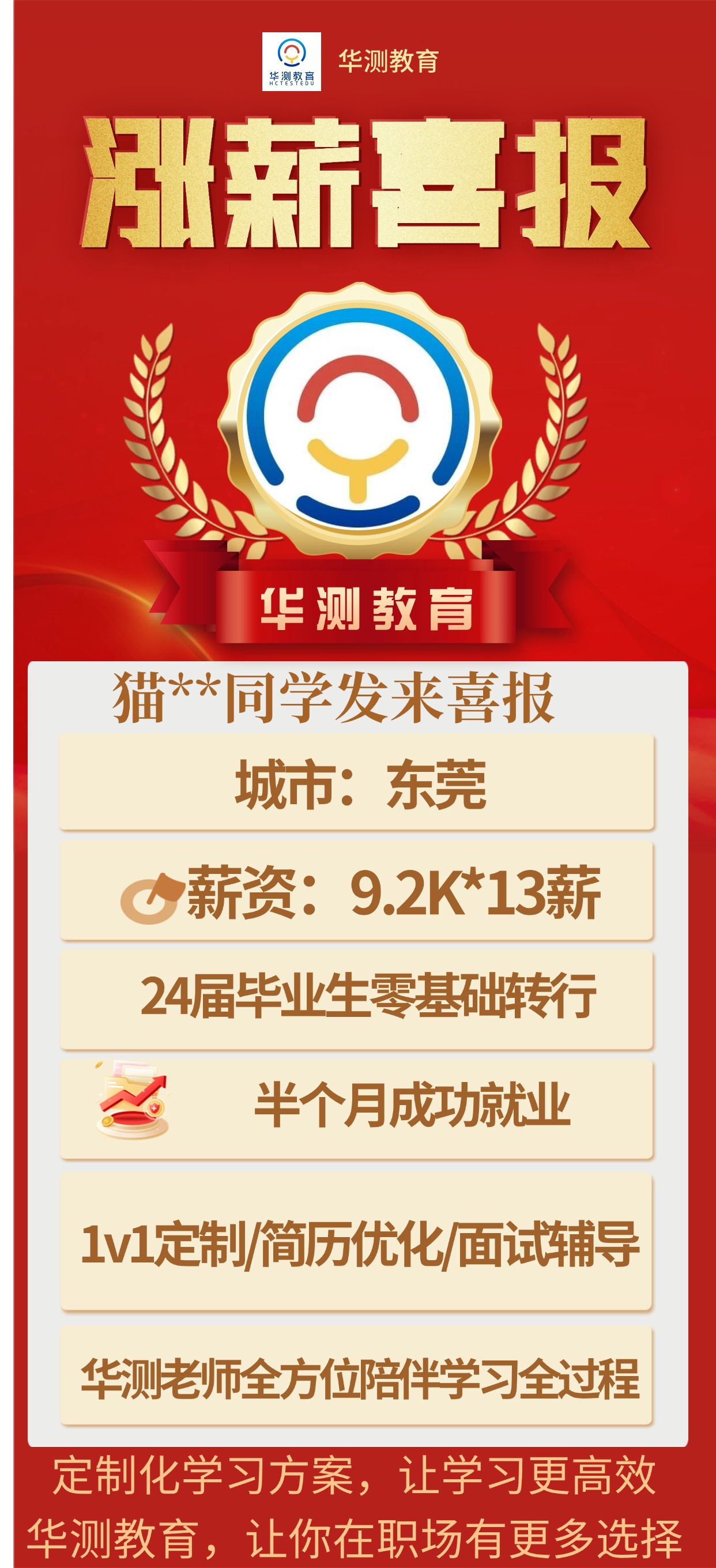 【华测喜报】零基础转行成功,东莞9.2K*13薪