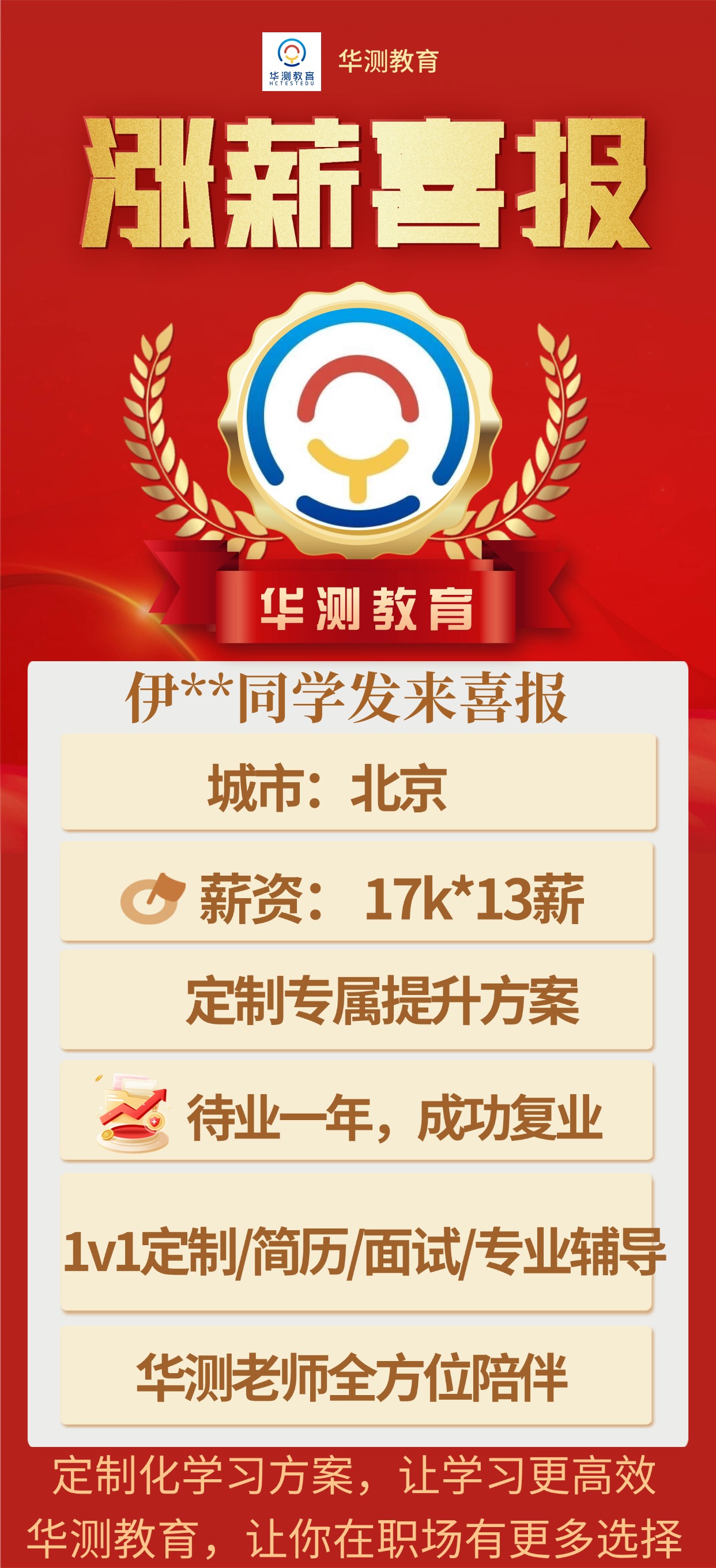 【华测喜报】北京 17k*13薪 待业一年成功辅导复业