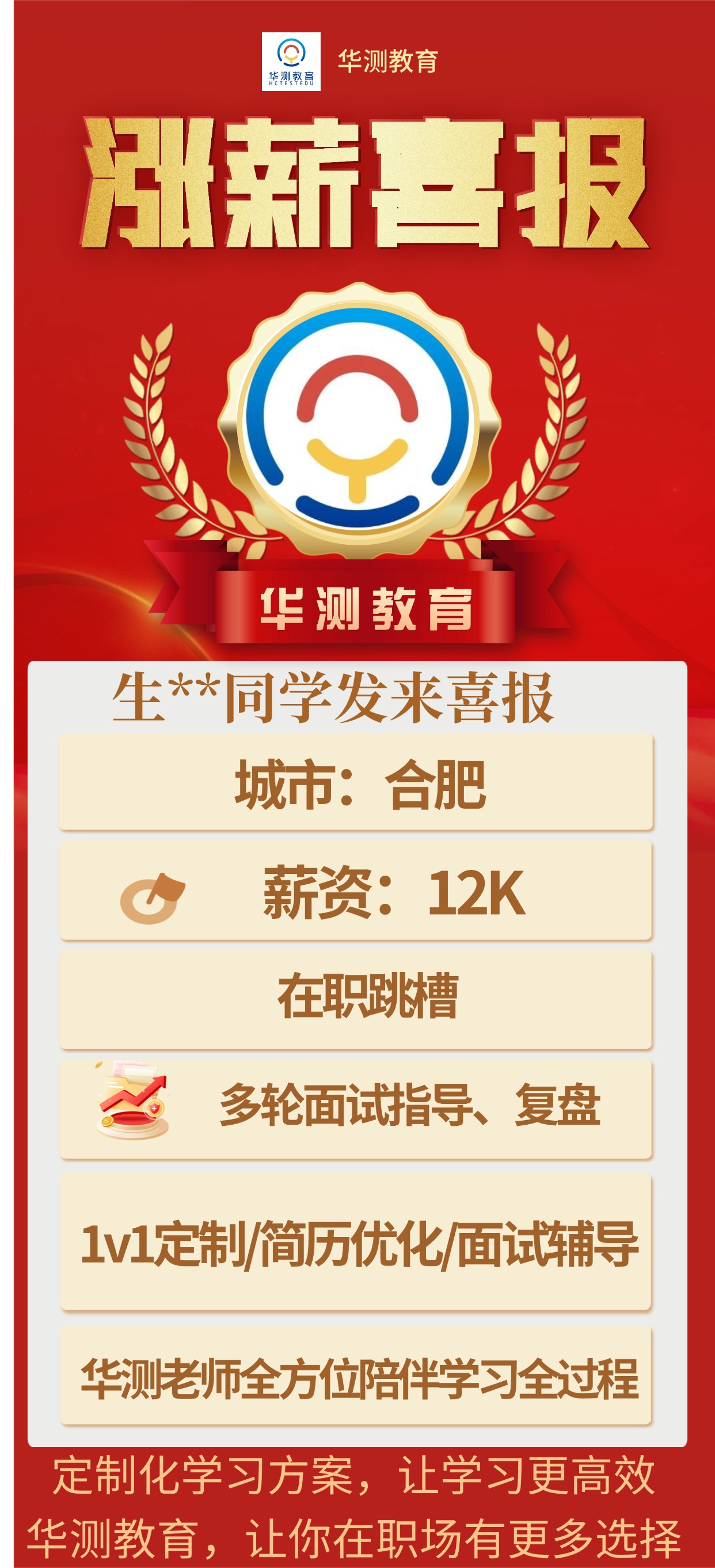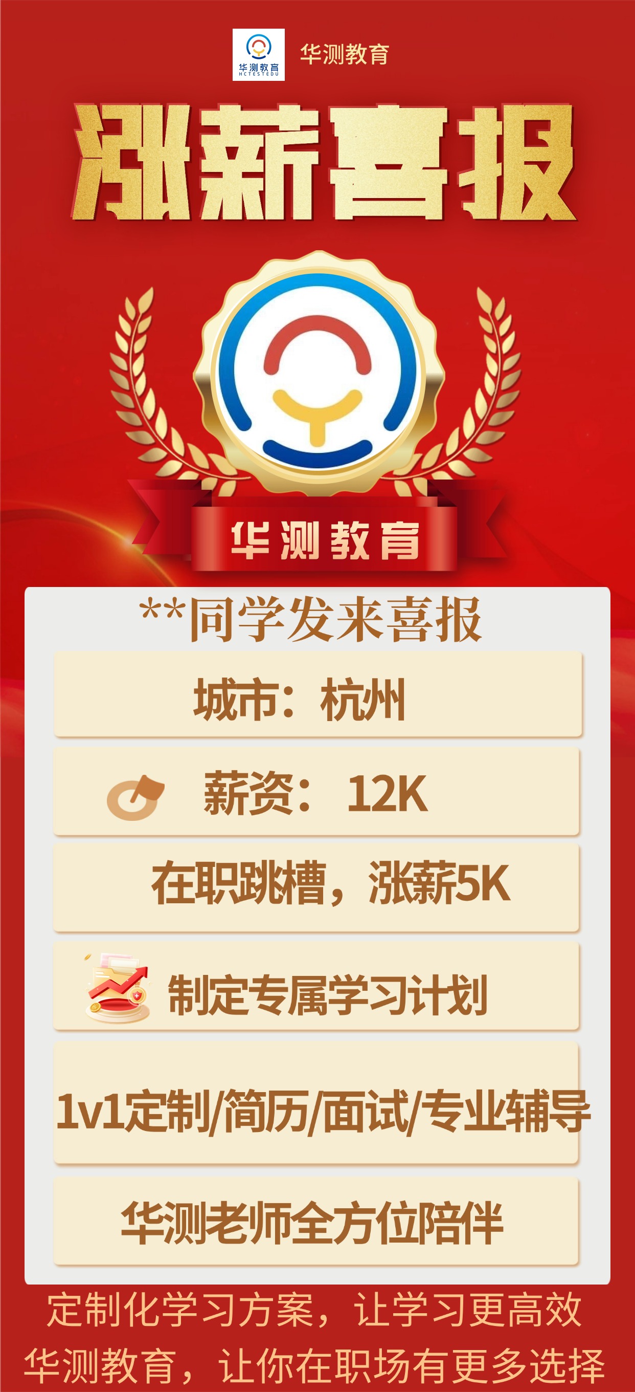 【华测喜报】杭州,在职跳槽,12K,涨薪5K