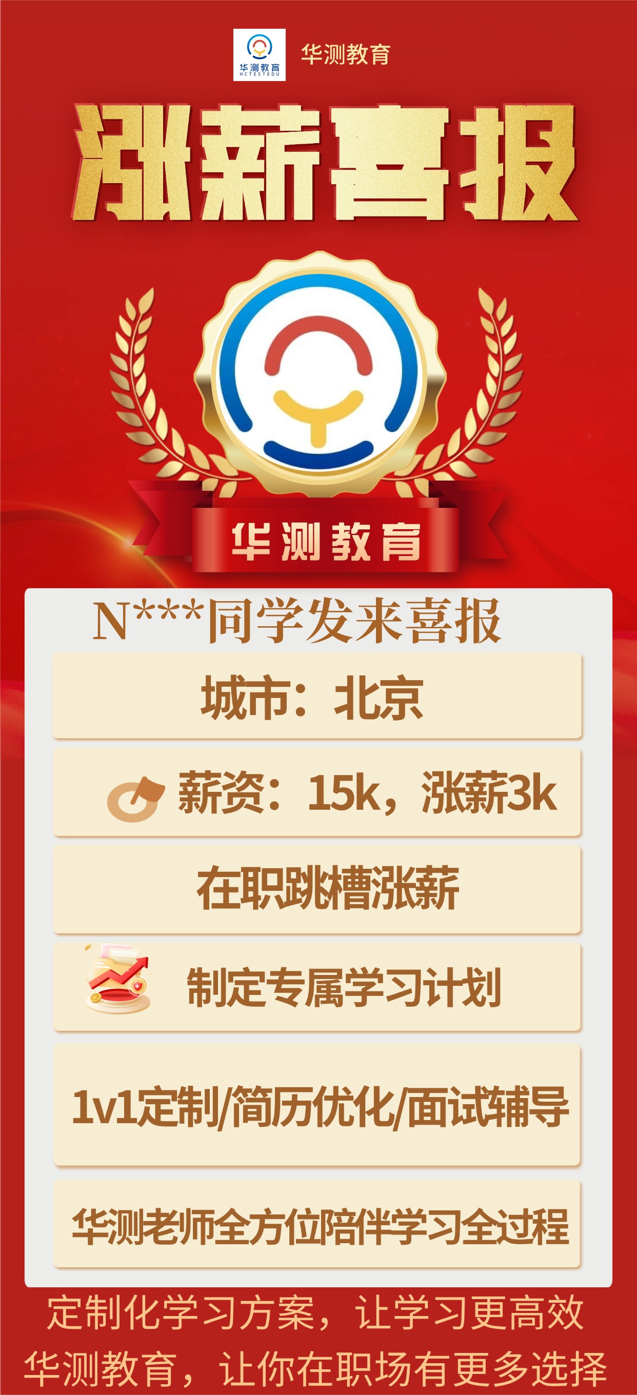 【华测喜报】北京 15K,在职跳槽涨薪3K