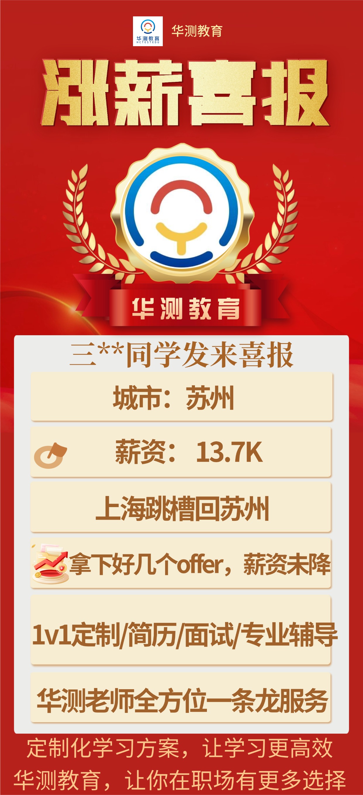 【华测喜报】苏州 13.7K📍 从上海跳槽回苏州