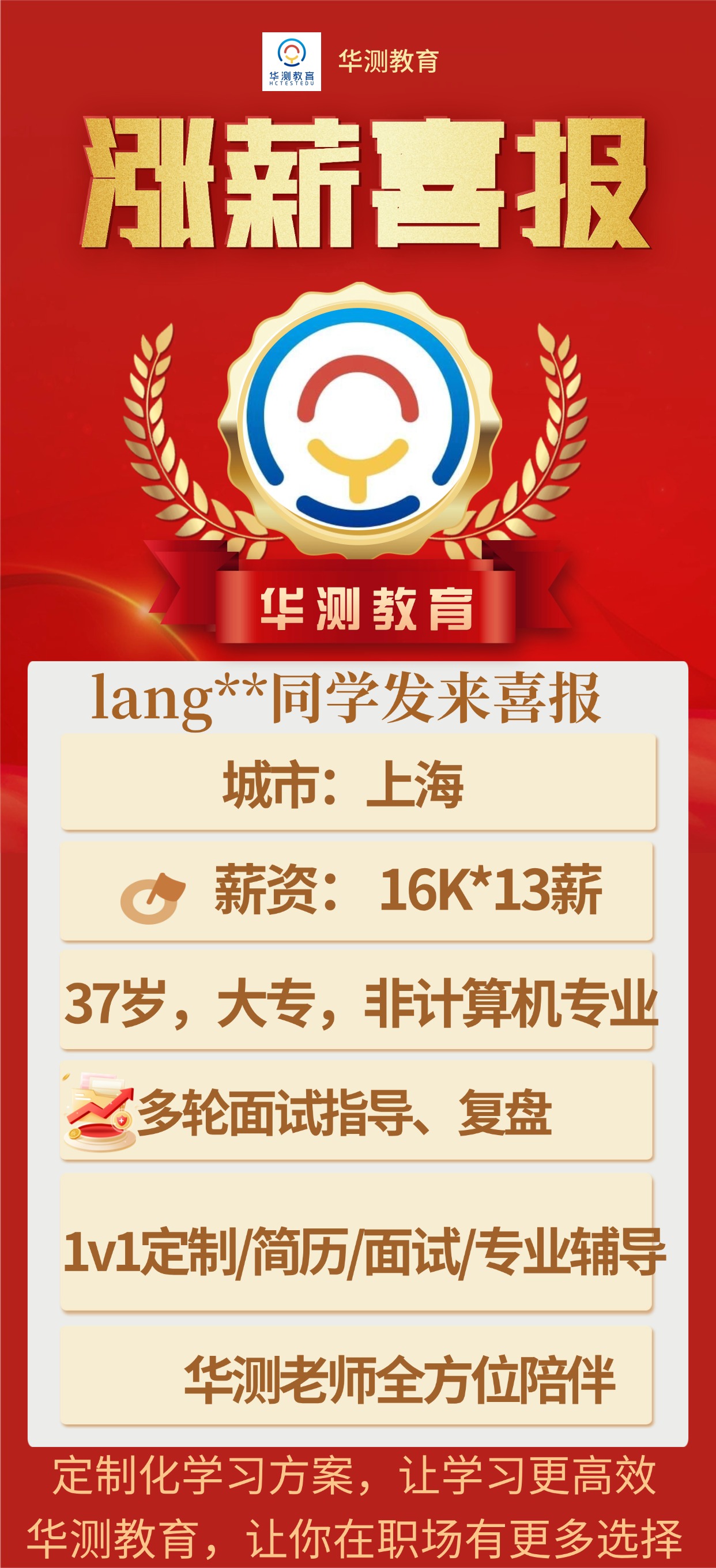【华测喜报】37岁上海复业成功,获16K*13薪