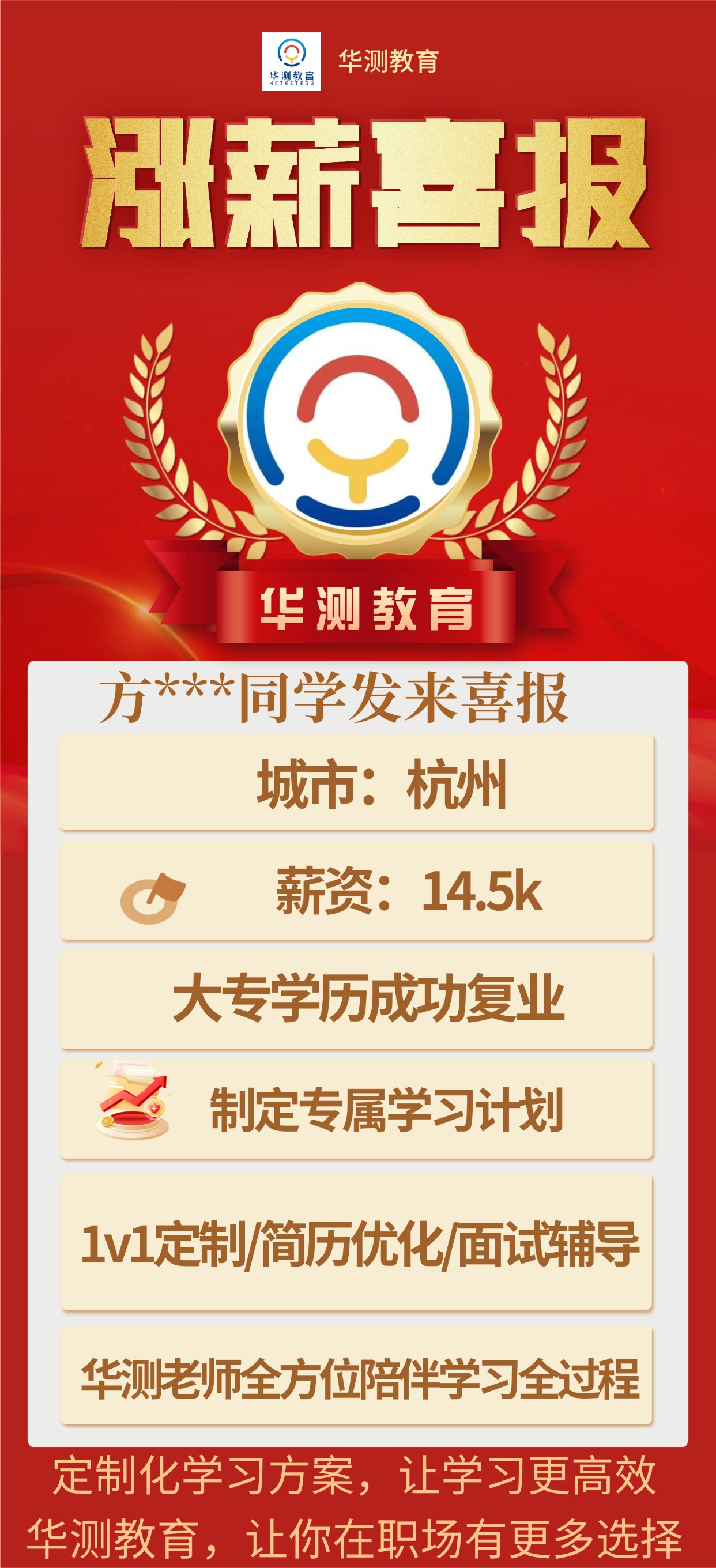 【华测喜报】杭州斩获 16K,成功复业,达到目标薪资